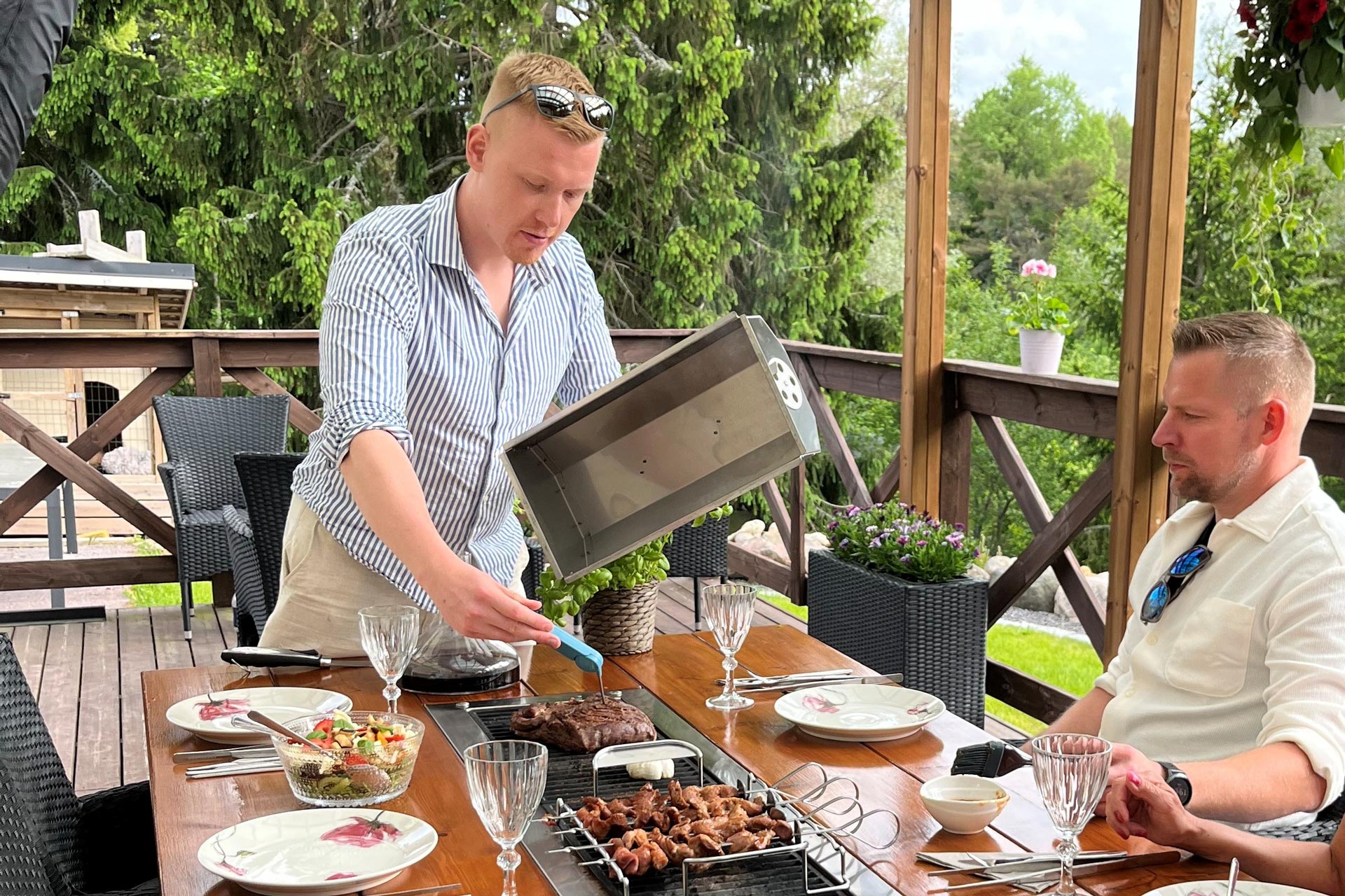 The SocialBBQ smoking / braising lid is made as domestic craftsmanship. The lid is sized for one section of the table, enabling even more versatile use of the Grill Table.